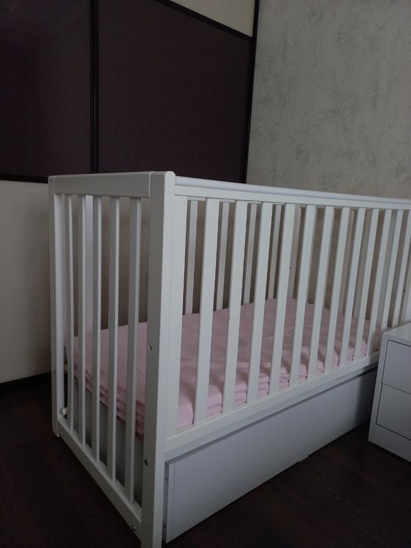 Кроватка Верес с маятником (фиксируется) и ящиком на два отдела. Состояние отличное. Матрас Верес тоже в отличном идеальном состоянии, отдам детское постельное белье.