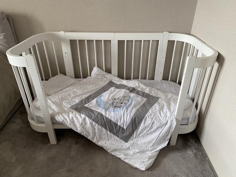 Ліжко-трансформер 3в1 OVALBED HAPPY MOM З маятником. С функцією нахилу дна на 7 градусів. Матрас розкладний с кокосовим наповнювачем. Знявши бортик, люльку можна приставити до дорослого ліжка Диванчик розмір: 70см*148см Гіпоалергенна емаль. Віддам в подарунок: тримач балдахіну, балдахін, одіяльце і подушку. Це все нове; 7 подушок-у деяких надірвані стрічки, якими тримаються за ліжко. Теж можу віддати. Дитина в ньому не спала, але коли розклали повністю, іноді гралася в ньому, тому є декілька ледь помітні подряпини. Всі деталі, інструкція збережені.
