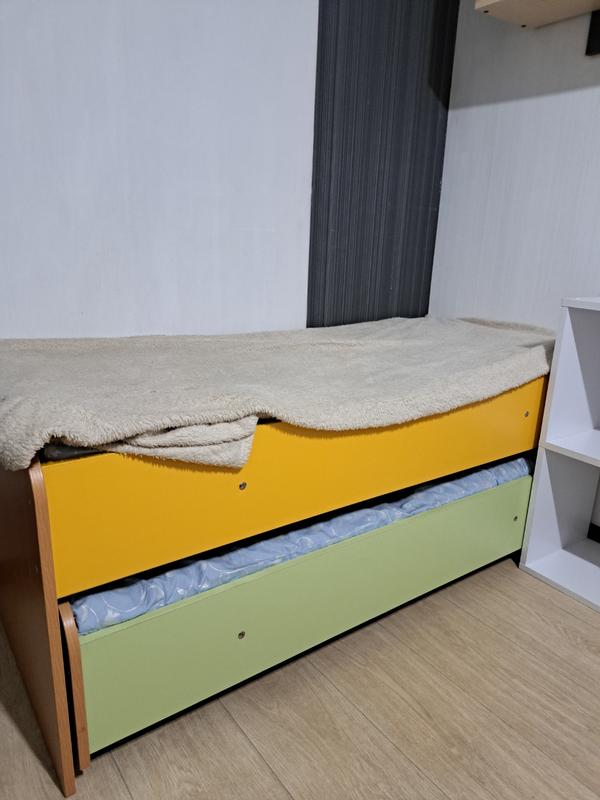 Детская кровать для двух деток, в возрасте до 7 лет (рост 128 см). В очень красивом состоянии, почти не использовалось. Матрасы ватные, тоже остаются. Кровать не разбирается. Самовывозитель: Одесса, улл. Седедская. Подробности по телефону **********