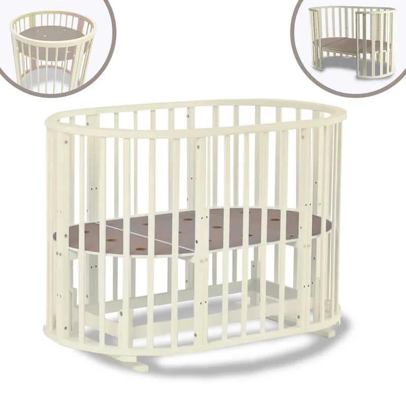 Гр круглая кроватка трансформер 8в1 "солнышко" с маятниковым механизмом (слоновая кость)