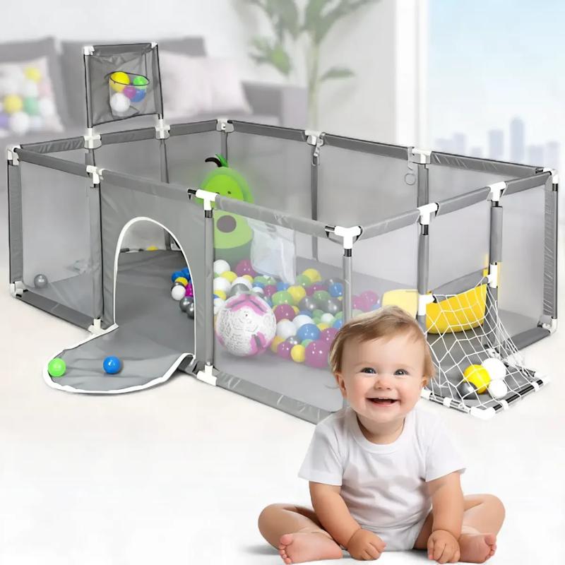 Детский манеж с сетчатыми стенками, баскетбольным кольцом и воротами KP-82 180х120х62см Детский манеж KP-82 представляет собой безопасное и функциональное игровое пространство для малышей.Его размеры 180×120 см и высота стенок 62 см обеспечивают достаточную площадь для активных игр, а усиленный каркас делает конструкцию устойчивой даже при энергичной игре ребенка. Сетчатые стенки позволяют родителям наблюдать за малышом с любого ракурса и обеспечивают свободную циркуляцию воздуха. Манеж оснащен баскетбольным кольцом и воротами,что делает его универсальной игровой зоной. Изготовлен из гипоаллергенной ткани, безопасной для нежной кожи ребенка. Легкая сборка позволяет быстро установить манеж дома или взять с собой в поездку. Стильный серый цвет гармонично вписывается в любой интерьер и подходит как для мальчиков, так и для девочек. Преимущества: Прочная конструкция:устойчивый усиленный каркас Безопасные материалы: гипоаллергенная ткань для нежной кожи Сетчатые стенки: полный обзор и вентиляция Многофункциональность: сухой бассейн, баскетбольное кольцо и ворота Легкая сборка:без лишних инструментов Компактность: подходит для дома и путешествий Универсальный дизайн:стильный серый цвет Мобильность:легко переносить и устанавливать Активные игры:просторная площадь для движения Простота ухода: легко протирать влажной тканью Характеристика: Размер игровой зоны: 180×120 см Высота стенок:62 см Каркас: усиленный, устойчивый Материал стенок:сетка Материал корпуса:гипоаллергенная ткань Цвет:серый Опоры манежа: ножки Баскетбольное кольцо:есть Ворота: есть Назначение:дом, квартира, путешествия Количество ярусов:1 игровая зона Комплектация: Детский манеж Баскетбольное кольцо Ворота