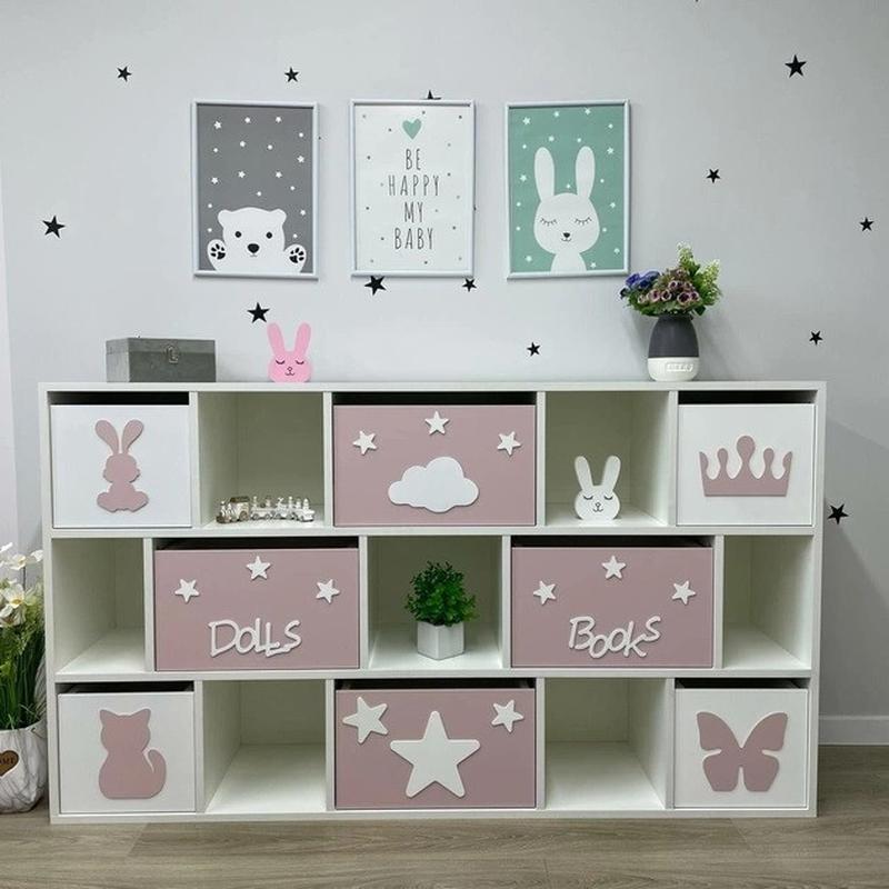 Стеллаж для игрушек, 8 ящиков, 15 ячеек. белый с розовым