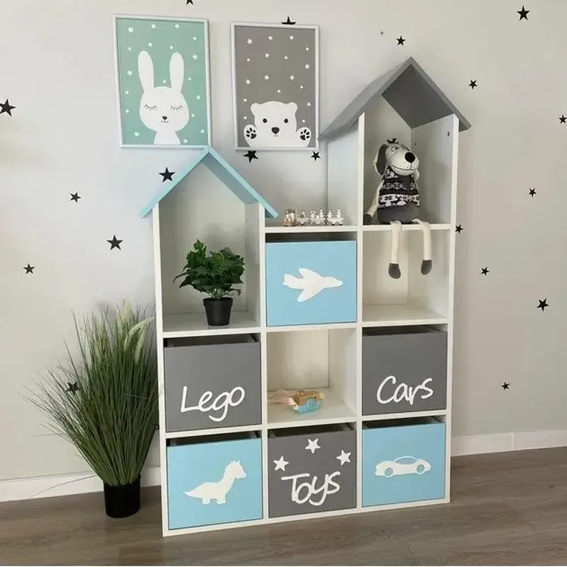 Стеллаж в детскую комнату дом на 14 ячеек, 8 ящиков