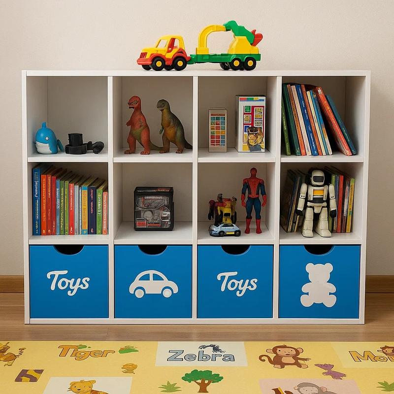 Стеллаж для детских игрушек и книг на 12 ячеек (белый с голубым) Удобное и стильное решение для хранения в детской комнате. Он помогает приучить ребёнка к порядку и создаёт организованное пространство для игр и развития. 📦 Модель включает: 8 открытых ячеек размером 30×30×30 см — отлично подходят для книг, игрушек, коробок и декора 4 выдвижных ящика на телескопических направляющих — легко открываются, удобны даже для малышей Стеллаж изготовлен из прочного ЛДСП толщиной 16 мм, что гарантирует надёжность и долговечность. Поверхности покрыты экологичной ламинатной плёнкой с защитным антиударным слоем, безопасной для детей. Продуманная конструкция визуально облегчает пространство, а разнообразие цветов корпуса, фасадов и декора позволяет подобрать оформление под любой интерьер. 💡 С *** ***** порядок в детской — это легко, красиво и с удовольствием! 📏 Размеры: Высота: 97 см Ширина: 128 см Глубина: 30 см Вес: 58 кг 🛠 Характеристики: Производитель: *** ***** Страна: Украина Материал корпуса: ЛДСП 16 мм Задняя стенка: ХДФ Ящики: ДСП 16 мм Фурнитура: телескопические направляющие Декор: лазерная печать + ламинирование с защитной плёнкой Возраст: от 3 лет 🚚 Доставка по всей Украине в разобранном виде с подробной инструкцией по сборке. В интернет-магазине «*** Мебель» вы получаете продукцию напрямую от производителя, что гарантирует лучшие цены и широкий ассортимент мебели для любого интерьера! 🔹Широкий выбор мебели для дома и офиса На нашем сайте вы найдете: ✅ Детские кровати ✅ Комоды, органайзеры ✅ Бюджетные кухни ✅ Столы и стеллажи ✅ Мебель для школ и детских садов ✅ Мебель для салонов красоты ✅ Кровати и полки 🔹 Консультации 24/7 – мы всегда на связи! Мы работаем без выходных! Наши эксперты помогут выбрать мебель для вашего интерьера. 🔹 Быстрая отправка – без задержек! 📦 Оформляйте заказ до 16:00 – отправим в тот же день! 📦 В субботу и воскресенье – отправка по договоренности. 🔹 Бонусы и скидки за отзывы! 💰 Оцените качество товара и ГАРАНТИРОВАННО получите скидку или бесплатную доставку на следующий заказ! 📸 Нам особенно ценны фото- и видео-отзывы. 💬 Сообщите о своем отзыве менеджеру в ********, ******** или ***** (по выбору) – и гарантированно получите приятный бонус! 🔍 Найдите нас в ****** – «*** Мебель» и ознакомьтесь со ******************************* Почему выбирают нас? 🔥 ✅ Качество, которому доверяют Мы предлагаем продукцию только из высококачественных материалов. Гарантируем надежность, долговечность и эффективность мебели! ✅ Огромный выбор карнизов и аксессуаров 🛒 У нас есть всё – от классических моделей до уникальных решений по индивидуальным пожеланиям! ✅ Заказ 24/7 – просто и быстро! 🕒 Наш сайт работает круглосуточно 💬 Напишите нам в *****, ******** или ******** – и мы поможем выбрать лучшие товары! ✅ Доставка по Украине и за границу 🚚 Отправляем заказы во все регионы Украины и страны Европы! ❗ Отправка в страны, открыто поддерживающие войну России против Украины, не осуществляется. 📦 Рассчитаем стоимость товара и доставки, а также подберем удобный для вас способ оплаты. Благодаря удобным методам оплаты и гибким условиям доставки, вы получите свой заказ быстро и без лишних усилий. ******************************* Как заказать? Простой алгоритм покупки: ✔ Оформите заказ через корзину на сайте или в мессенджерах (*****, ********, ********) ✔ Мы свяжемся с вами для уточнения деталей ✔ Отправим