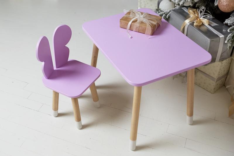 Детский столик и стульчик, фиолетовый прямоугольный столик и стульчик бабочка, фиолетовый