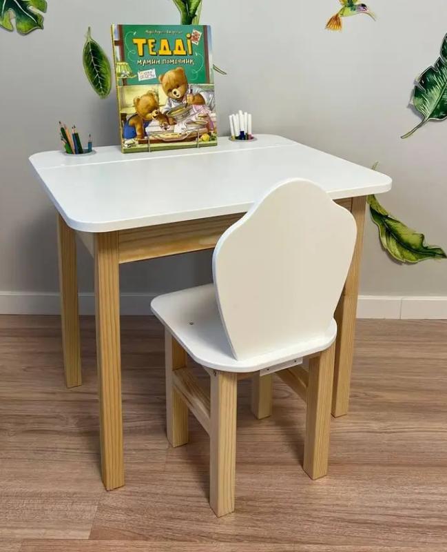 Набор стол с откидной столешницей со стулом с декоративной спинкой ВИДЕО ОБЗОР НАБОРА Описание Набор "Столик с ящиком и стульчик фигурный" • Изготовлен для детей 2-й группы роста (116-130см.) • Материал: - Столешницы столика и сиденья стульчика изготовлены из МДФ. Ящик и ножки столика и стульчика - сосна нелакированная. • Крышка столика оснащена подъемным механизмом. Под ней находится ящик для хранения канцелярских принадлежностей для рисования и детского творчества. - Размеры столика: - высота 52см, ширина 60см, длина 50см - Размеры стульчика: - высота от пола до сидения 30 см • Все детали комплектацию входят в набор. Вам понадобится только отвертка. Почему именно мы? Больше товаров со скидкой, жми значок!
