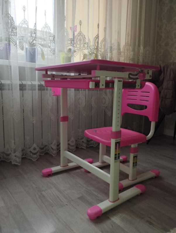Продам парту со стулом в идеальном состоянии .Цена 2800 тыс ,в использовании была месяц .Ярко розового цвета .Парта и стул регулируются .