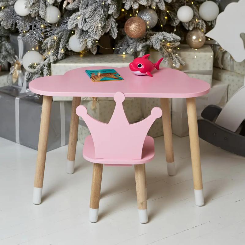 Детский столик облачко и стульчик корона розовые мдф для игр и обучения мебель для детей 1...