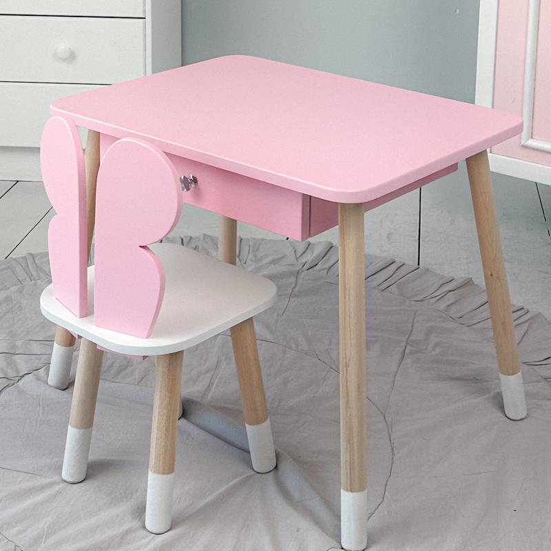 Дитячий столик і стільчик рожевий. Столик із шухлядою для олівців і розмальовок Характеристики: Стіл із шухлядою: - Розмір (ВхДхШ): 46х60х45 см - Матеріал: Натуральне дерево та МДФ - Глибина ящика: 6 см - Ширина ящика: 34 см - Довжина ящика: 30 см - Фарба: Екофарба. Не викликає алергії в діток - Висувний механізм ящика Стільчик розміри: Розмір (ВхДхШ): 26.5х26х25 см Матеріал: Натуральне дерево та МДФ Фарба: Еко фарба. Не викликає алергії у діток Особливості наших меблів: 1. Цікавий дизайн 2. Просте збирання 3. Надійна та зручна у використанні конструкція 4. Підходить для навчання та ігор Виготовлений відповідно до госту для дітей 1 групи зросту (100-115 см) ⠀ Підходить для дітей від 1,5 до 7 років. Висувний ящік для зберігання речей ⠀