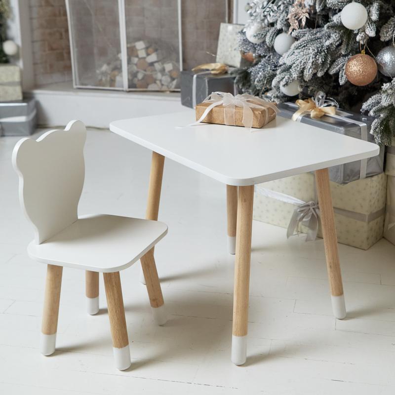 Прямоугольный стол и стульчик детский белый мишка. Столик для уроков, игр, еды. Характеристики: Стол - Размер (ВхДхШ): 46х60х45 см - Материал: Натуральное дерево и МДФ - Фарба: Екофарба. Не вызывает аллергии у деток Стульчик размеры: Размер (ВхДхШ): 26.5х26х25 см Материал: Натуральное дерево и МДФ Краска: Эко краска. Не вызывает аллергии у деток Особенности нашей мебели 1. Интересный дизайн 2. Простая сборка 3. Надежная и удобная в использовании конструкция 4. Подходит для обучения и игр Изготовлен в соответствии с ДСТУ для детей 1 группы роста (100-115 см) ⠀ Подходит для детей от 1,5 до 7 лет.