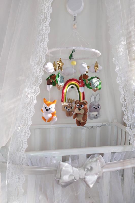 Ціна вказана тільки за кільце з іграшками!.⚠️ Можна придбати окремо основу з іграшками або доповнити її комплектуючими - музичний блок, який буде обертати іграшки і відтворювати приємні мелодії, кронштейн пластик/дерево на вибір. Якщо в ліжечку буде балдахін,то кронштейн не потрібен. Мобіль в такому випадку можна закріпити на тримачі балдахіна ☝️ Будь-мобіль можна повторити або скорегувати за кольором і іграшок! Також можна розробити мобіль з героями по будь-яким ілюстрацій🤗 Підберемо палітру і дизайн мобіля в концепції з бортиками в ліжечко і загальним інтер'єром кімнати👌