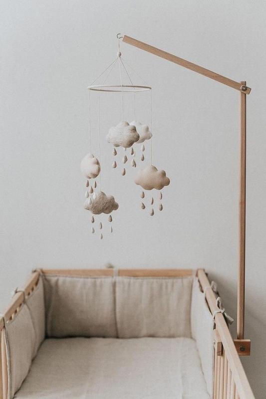 Мобиль для деток "Облачки". Очень нежный, возможно исполнение в выбранном вами цвете. Цена указана за основу с игрушками, дополнительно можно приобрести кронштейн и музыкальный блок, из-за активной смены курса, уточнить стоимость в момент заказа.
