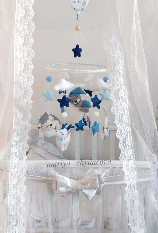 Цена указана только за кольцо с игрушками!.⚠️ Можно приобрести отдельно основание с игрушками или дополнить ее комплектующими – музыкальный блок, который будет вращать игрушки и воспроизводить приятные мелодии, кронштейн пластик/дерево на выбор. Если в кроватке будет балдахин, то кронштейн не нужен. Мобиль в таком случае можно закрепить на держателе балдахина ☝️ Будь-мобиль можно повторить или скорректировать по цвету и игрушкам! Также можно разработать мобиль с героями по любым иллюстрациям🤗 Подберем палитру и дизайн мобиля в концепции с бортиками в кроватку и общим интерьером комнаты👌