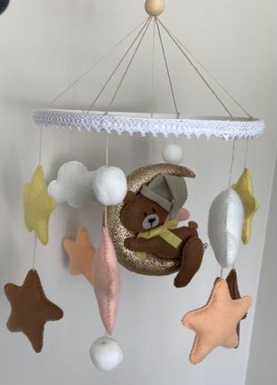Мобиль на кроватку ручной. Диаметр основания (кола)-20см. Изготовлено с любовью )) при необходимости скина видео.