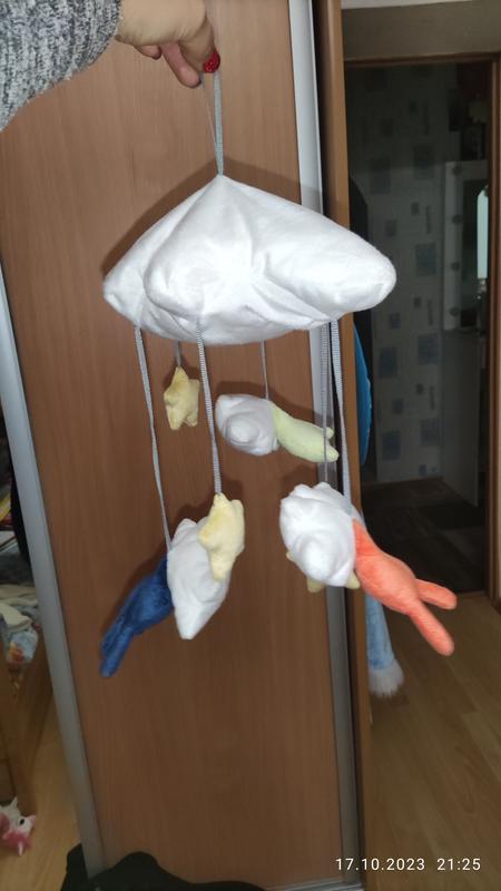 Мобиль для малыша в идеальном состоянии. Облачко со звездочками и зайчиками. Наполнитель синтепон, который не будет вредить ребенку при игре с игрушкой