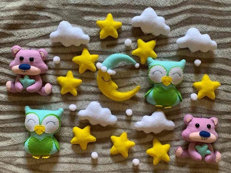 Набор игрушек для мобиля. Есть петельки для крепления. Сшито из качественного корейского фетра. Возможны другие расцветки и комплектация. Товар под заказ