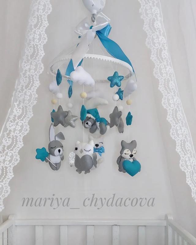 Одной из первых забав вашего малыша будет мобиль. Яркие интересные игрушки – первое, что видит малыш, проснувшись в кроватке. Наблюдая за ними, дети изучают формы, цвета, учатся различать предметы, что способствует физическому и умственному развитию малыша. Мобиль - это отличный помощник для мамы и развивающая игрушка для ее малыша. Детский мобиль для малыша ручной работы, изготовленный из высокого фетра. качества, внутри каждой игрушки есть гипоаллергенный наполнитель. Товар изготавливается по заказу