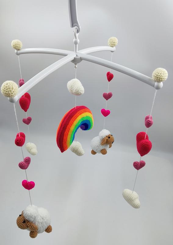 Детский мобиль ручной работы, игрушки вязанные крючком. В наборе: - кронштейн разборной 66,5 см - музыкальный блок: 35 мелодий (детские и классические) с регулятором громкости, крючок вращается даже в беззвучном режиме - батарейки 2 АА - крестовина с игрушками Игрушки выготовлены из безопасных материалов. Этот мобиль станет не только развивающей игрушкой для вашего ребенка, но и придаст уют вашей детской комнате.