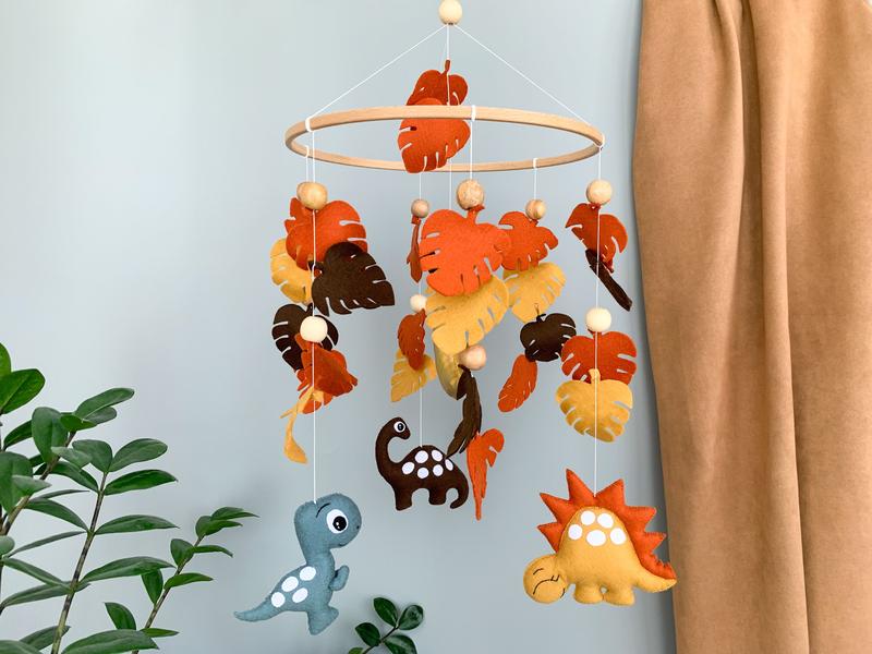 Мобіль, карусель на дитяче ліжечко з динозаврами. ручна робота з фетру. гіпоалергенні мате...