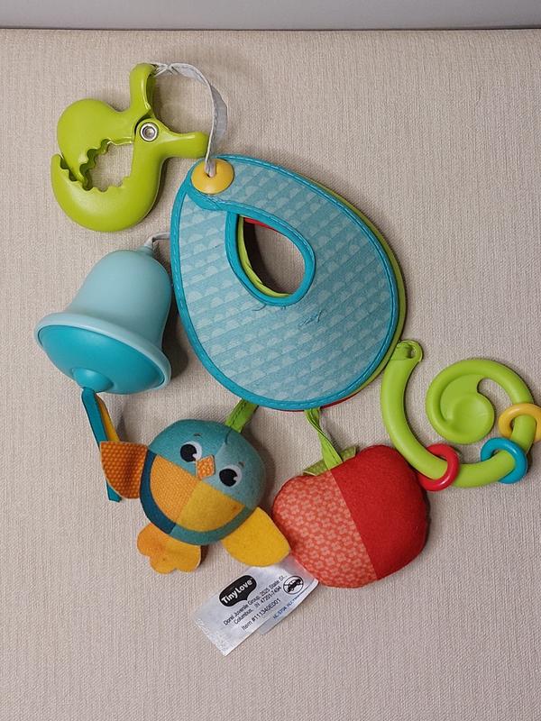 Мобіль Tiny Love Pack&Go стане улюбленою іграшкою для малюка не тільки вдома, а й на прогулянці, на вулиці або в дорозі під час подорожі! Це чудова розвиваюча іграшка з перших місяців життя дитини. Мобіль виконано з різнофактурних матеріалів. Він компактно складається (зібраним поміститься в маленьку сумочку чи кошик коляски) та має зручне універсальне кріплення. В комплекті безпечне дзеркальце, анатомічний прорізувач, м'ячик - брязкальце, китайський дзвіночок, хрусткі елементи. 0 + місяців - малюк звертатиме увагу на іграшку; 1-3 місяці - легенько підштовхніть мобайл - розгойдані строкаті об'єктів пробудить малюка стежити поглядом і, з часом, спробувати штовхати іграшки; 3+ місяці малюк може сам практикуватися в підштовхуванні іграшок, насолоджуючись барвистістю забавного компактного мобайла