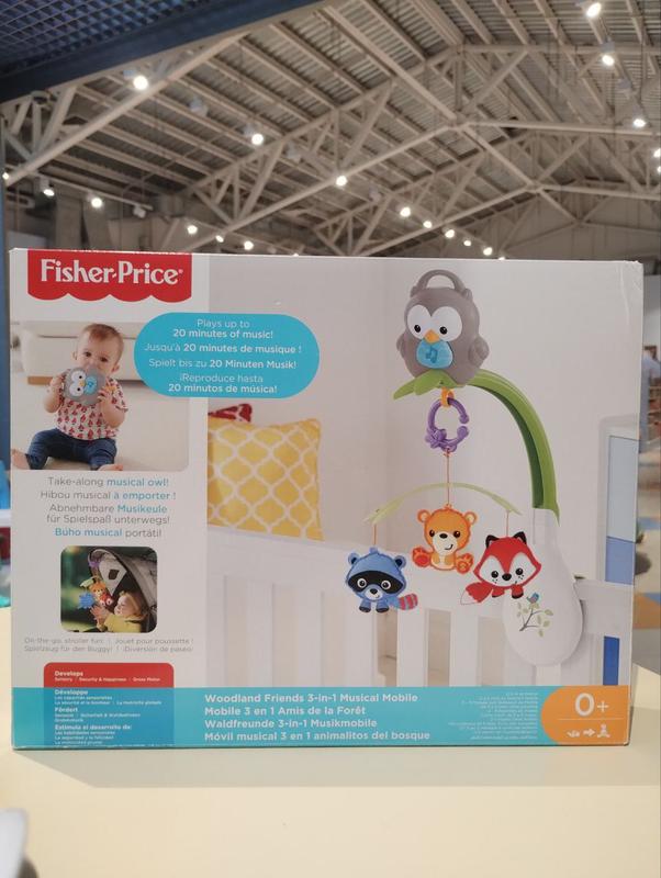 Мобиле можно использовать как традиционное мобиле на детскую кроватку или подвеску для тележка, а сову - как самостоятельную музыкальную игрушку. В включенном состоянии зверята плавно вращаются по кругу, а приятная музыка раздается до 20 минут.