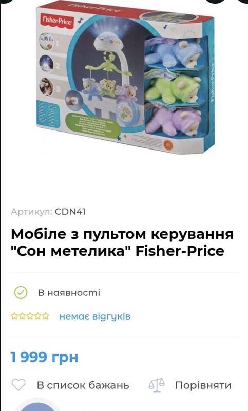 КаталогПодбор подарка Мобиль Fisher-Price Сон бабочки с эффектами с пультом управления (CDN41) Описание товара Товар бренда Fisher-Price Мобиль Fisher-Price Сон бабочки — самая первая игрушка новорожденного, с которой малыш будет засыпать быстро и беззаботно. У мобиля есть симпатичные мишки, проектор с бабочками, колыбельные песни, нежные мелодии и звуки природы. С помощью пульта с дистанционным управлением мобиль может использоваться как лампа-ночник даже на расстоянии. Оригинальная игрушка будет развивать зрение ребенка и его слух. Есть 3 аудиорежима до 30 минут колыбельной музыки, белого шума или звуков природы. Материал: текстиль, пластик. В комплекте: пульт управления; музыкальный купол-проектор; дуга с регулятором на 2 положения для крепления мобиля на кроватку и на стол; 3 мягких медвежонка; 3 дужки с бабочками и атласными ленточками для крепления к музыкальному куполу. Рекомендовано для детей от рождения