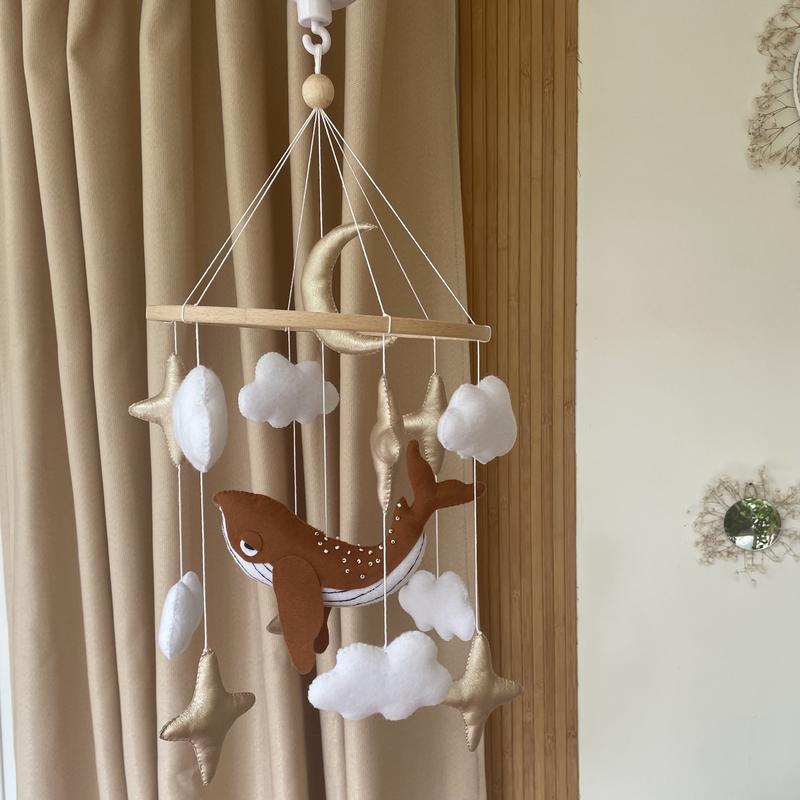 Мобіль виготовлений з американського фетру (гіпоалергенно). Запакований у святкову коробку, тож може бути гарним подарунком.