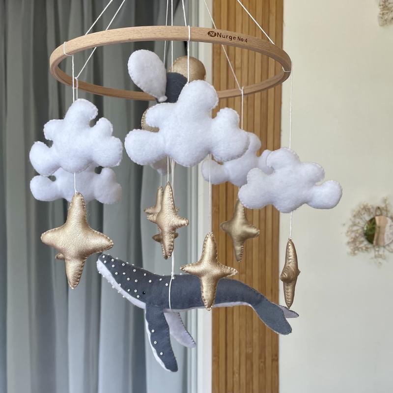 Мобіль виготовлений з американського фетру (гіпоалергенно). Запакований в святкову коробку, тож може бути гарним подарунком.