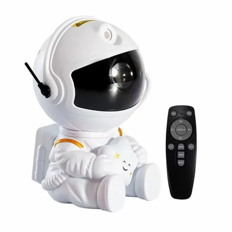 Невероятный звездный проектор Астронавт mini! Создавай космическое пространство в своей комнате и наслаждайся красотой галактики Способы управления: 1. Кнопки на задней панели позволяют включить проектор, и при долгом нажатии выключить, переключать режим туманности и звездного неба: 1-я кнопка – управление туманностью, нажмите для переключения туманности, и нажмите, чтобы закрыть; 2-я кнопка-это переключатель запуска. Нажмите, чтобы начать, и долго нажмите, чтобы отключить его; 3-я кнопка – управление звездами, нажмите для включения и нажмите для отключения. 2. Пульт дистанционного управления, позволяющий регулировать цвет, яркость и частоту мигания туманности и звездного неба, а также переключение настроек проектора и синхронизации. Цвет туманности: многоцветный (контролируемый монохромный) Вращение на 360 ̊, свободная регулировка, позволяющая спроектировать туманность по всем углам Размер: 8,5*12,5 см Материал корпуса: АВС-пластик +ПВХ
