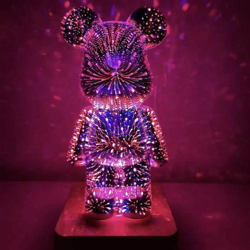 3D ночник светильник Мишка фейерверк