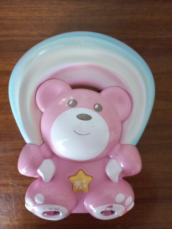 Имеет несколько режимов. Радуга постепенно загорается, или горит сразу вся. Музыка классическая, или режим с современной. Все работает, только крышечка сзади, где открывать радугу при взятии в руки может сама открываться. Но это ничему не мешает.