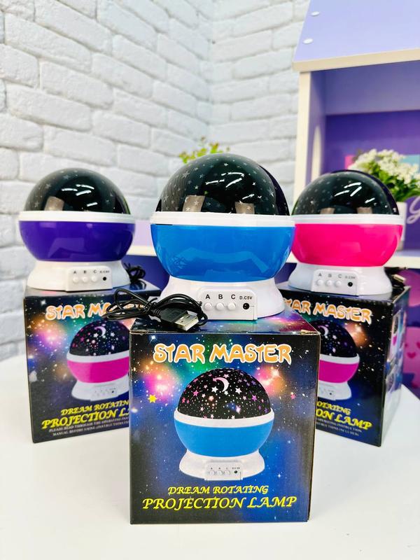 🎇НІЧНИК 🎆STAR MASTER🌠 💗Розовый (артикул: 0036) 💜Фиолетовый (артикул: 0037) 💙Голубой (артикул: 0035) ✍️Описание: Круглый вращается ночник-проектор звездное небо Star Master отличный подарок для вашего ребенка. Он осветит комнату вашего малыша чудесными звездами и луной. Питание возможно от USB провода или от 3 батареек типа АА. Комплектуется полупрозрачным матовым колпаком, который позволяет создать более приглушенное уютное свечение. Ночник имеет три кнопки (режим работы): 1) проекция белого света (белые звезды); 2) режим RGB с возможностью выбора одного или переменного свечения красного, синего и зеленого цветов; 3) вращение сферы. 🔋Питание: USB-кабель (прилагается) или 3 батарейки АА (не прилагаются) Не используйте одновременно батарейки и USB кабель 🗃Комплектация: - проектор вращающегося звездного неба Star Master; - Полупрозрачный матовый колпак; - USB провод питания 📐Размер: 13x13x14.5см