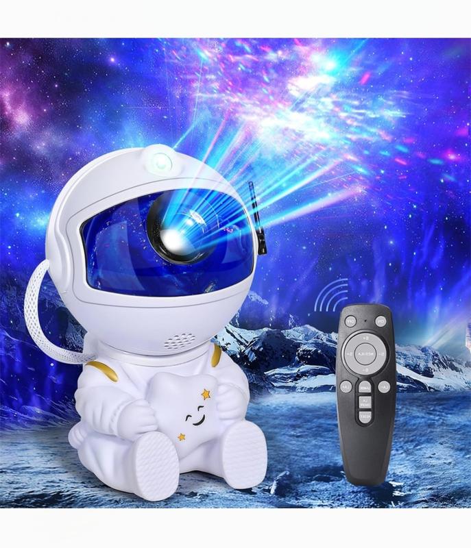 Невероятный звездный проектор Астронавт mini! Способы управления: Кнопки на задней панели позволяют включить проектор, и при долгом нажатии отключить, переключать режим туманности и звездного неба: 1-я кнопка - управление туманностью, нажмите для переключения туманности, и нажмите, чтобы закрыть; 2-я кнопка есть переключатель запуска. Нажмите, чтобы начать, и долго нажмите, чтобы выключить его; 3-я кнопка - управление звездами, нажмите, чтобы включить и нажмите, чтобы выключить. 2. Пульт дистанционного управления, позволяющий регулировать цвет, яркость и частоту мигания туманности и звездного неба, а также переключения настроек проектора и синхронизации. Цвет туманности: цветной (контролируемый монохромный) Вращение на 360, свободное регулирование, позволяющее спроектировать туманность по всем углам. Размер: 8,5 * 12,5 см