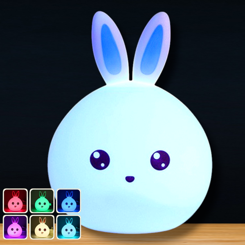 Ночник "Зайчик" - спокойный сон и сказочная атмосфера! 6 цветов свечения переключаются с помощью прикосновения. Может работать от аккумулятора, розетки, компьютера, Power-банка. Лампа имеет много разных цветов: теплый белый, красный, синий, зеленый, фиолетовый. Вы можете включить один постоянный цвет или включить переливающийся режим цвета. Характеристики устройства: Встроенный литий-ионный аккумулятор Li-ion 3.7 700мАч; Время зарядки: около 3:00; Напряжение тока: 5V; Мощность: 0,4 Вт; Источник света: светодиоды; Источник питания: DC; Доставка по всей Украине любыми службами доставки. Самовозиватель - Одесса ТЦ "Семья" ПИШИТЕ или ТЕЛЕФОНУЙТЕ. Выполняем заказ в самый короткий срок.