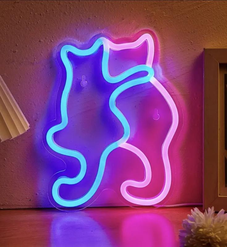 Світлодіодний неоновий світильник у формі котиків. Можна зробити подарунок, як декор для кімнати в офісі. Живлений від USB Розмір:вказаний на фото Колір:Синьо рожевий