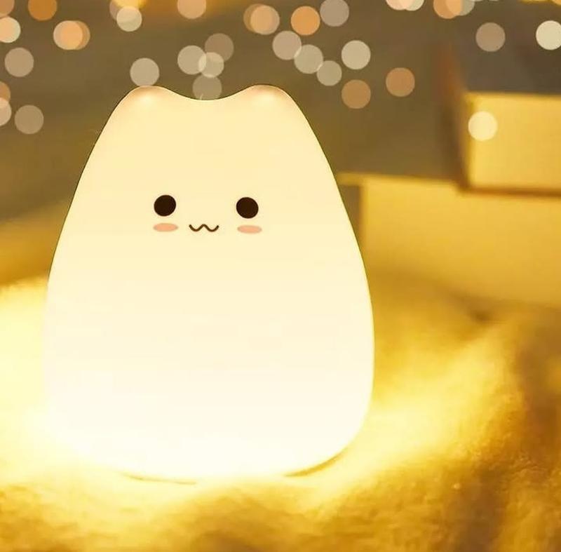 Ночник детский с 7 сменными цветами котик 10 см, силиконовый на батарейках🤍