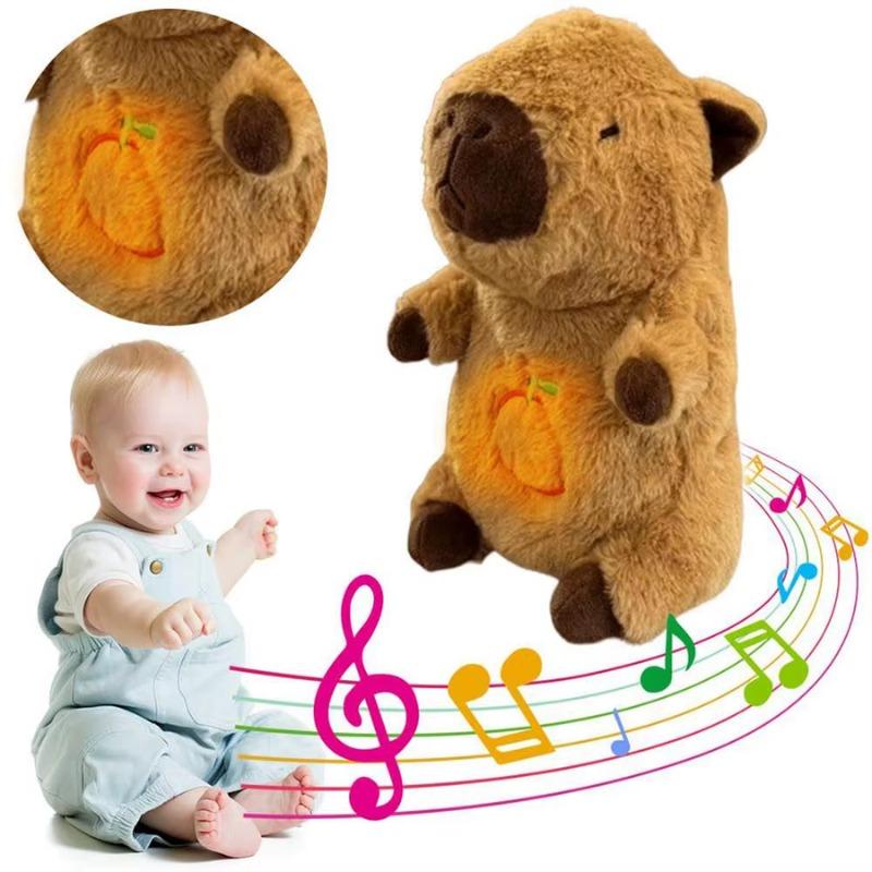 Капибара мягкая игрушка ночник, плюшевая игрушка с имитацией дыхания и подсветкой