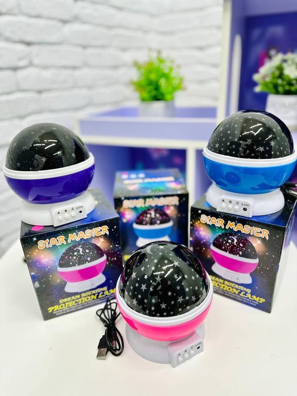 🎇НІЧНИК 🎆STAR MASTER🌠 💗Рожевий (артикул: 0036) 💜Фіолетовий (артикул: 0037) 💙Блакитний (артикул: 0035) ✍️Опис: Круглі обертається нічник-проектор зоряне небо Star Master чудовий подарунок для вашої дитини. Він освітить кімнату вашого малюка чудовими зірками та місяцем. Живлення можливе від USB проводу або від 3 батарейок типу АА. Комплектується напівпрозорим матовим ковпаком, який дозволяє створити більш приглушене затишне свічення. Нічник має три кнопки (режим роботи): 1) проекція білого світла (білі зірки); 2) режим RGB з можливістю вибору одного або змінного світіння червоного, синього та зеленого кольорів; 3) обертання сфери. 🔋Живлення: USB-кабель (додається) або 3 батарейки АА (не додаються) Не використовуйте одночасно батарейки та USB-кабель 🗃Комплектація: - проектор зоряного неба, що обертається Star Master; - Напівпрозорий матовий ковпак; - USB провід живлення 📐Розмір: 13x13x14.5см