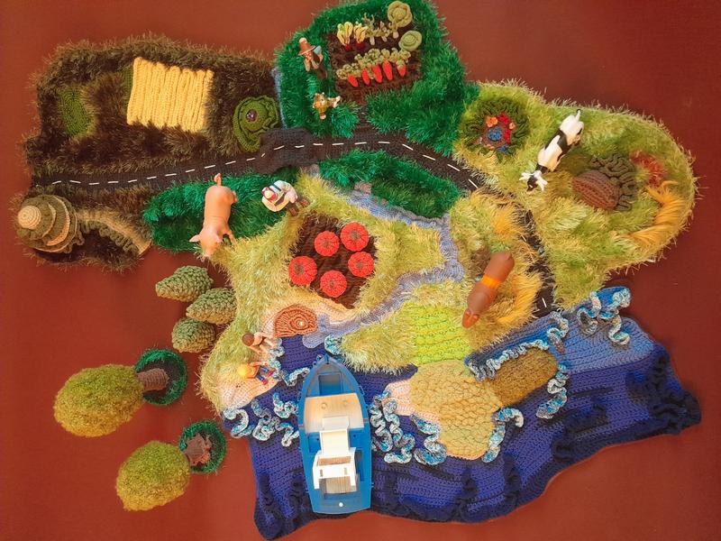 Большой игровой тактильный коврик Украина с морями. 100×73 Дорога, 2 больших огорода, пшеничное поле, разные поляны, горы, река и 2 моря. Все это дает огромную платформу для развития детей. В игре Вы можете изучать города и особенности Украины, времена года, изучать животных, овощи, морской мир. Игровой коврик помогает развить мелкую моторику и фантазию. С ним можно "проигрывать" разные сценарии, придумывать интересные истории, вспоминать и рассказывать сказки. Коврик имеет разные фактуры пряжи и объемные элементы. Подкладка фетровая.