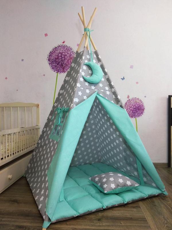 Вігвам дитячий "зірочки з мятою", повний комплект з 10 елементів