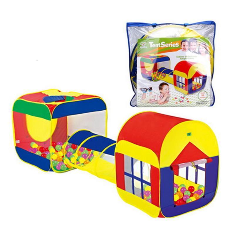 Намет "З тунелем" легко встановлюється і так само просто складається. Палаточка така яскрава і красива, що обов'язково сподобається малюкові. Сам будиночок зроблений у формі пірамідки, а ще є цікавий додатковий елемент – довгий лаз (тунель), по якому дитині буде цікаво в будиночок забиратися. Зроблена дитячий намет з тунелем з цупкої тканини хорошої якості. Вона не вигоряє і надовго зберігає свої яскраві насичені кольори. Вік: 1+ Розмір зібраної намети : 240х90.5х100 см З тунелем та сухим басейном. Розмір: 272 см * 88 см * 110 см