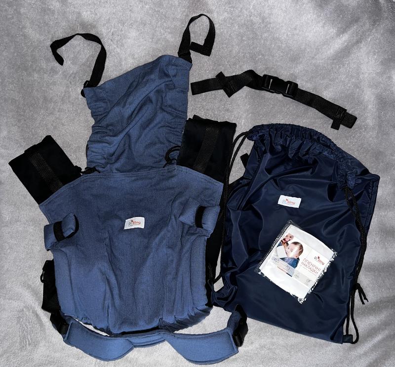 Ерго-рюкзак був у використанні два рази по хвилин 10. Комплектація Ергономічний рюкзак. Сполучна стропа для носіння рюкзака з паралельними лямками або для носіння за спиною. Знімна дуга. Інструкція з QR - кодом. Рюкзак - чехол для зберігання та транспортировки рюкзака. Характеристики Регулювання: по ширині, по висоті. Пояс рюкзака розрахований на об’єм талії /стегон від 65 до 120 см. Тканина: льон/віскоза Виробник: Di Sling (Україна). Перший розмір рюкзака розрахований на дитину вагою від 3,5-4 кг до 10-15 кг, це приблизно до року-півтора.