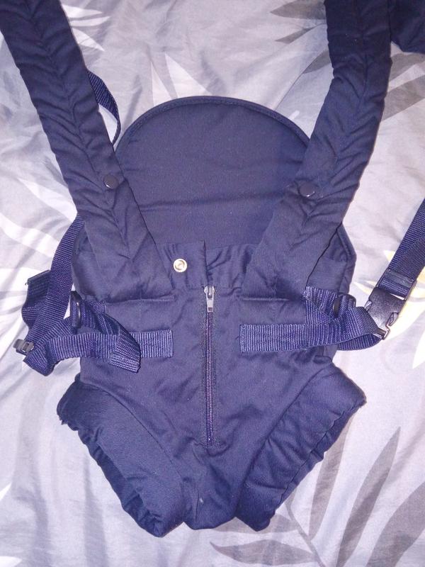Рюкзак-кенгуру для перенесення немовля, темно синього кольору. Ремінці регулюються.