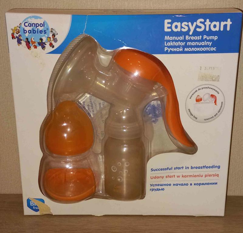 Ручной молокоотсос в хорошем состоянии. Нет одной бутылочки. Подойти любая бутылка этой фирмы. Есть переходник от бутылки с широким горлышком. Бутылкой с широким горлом не пользовались, но мыли. Соска на бутылке хорошая. Есть две крышки от стандартной бутылки и 2 заглушки. Есть новые силиконовые накладки ( на фото указала).
