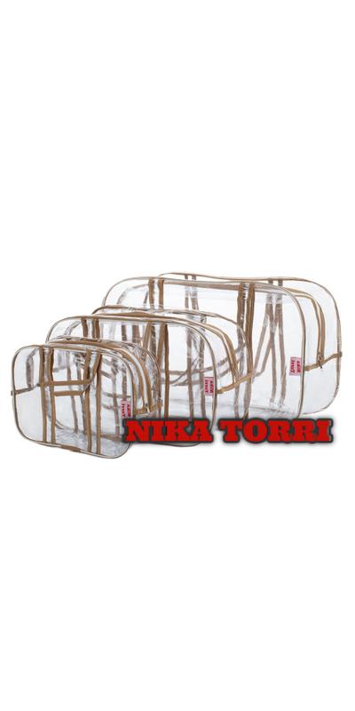 Набор прозрачных сумок в роддом с прозрачными ручками nika torri (s, m, l) золотистый