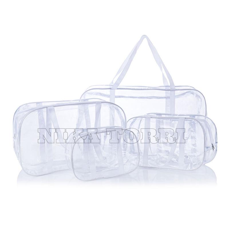 Набор прозрачных сумок (s, m, l, xl) с ременными ручками, белый
