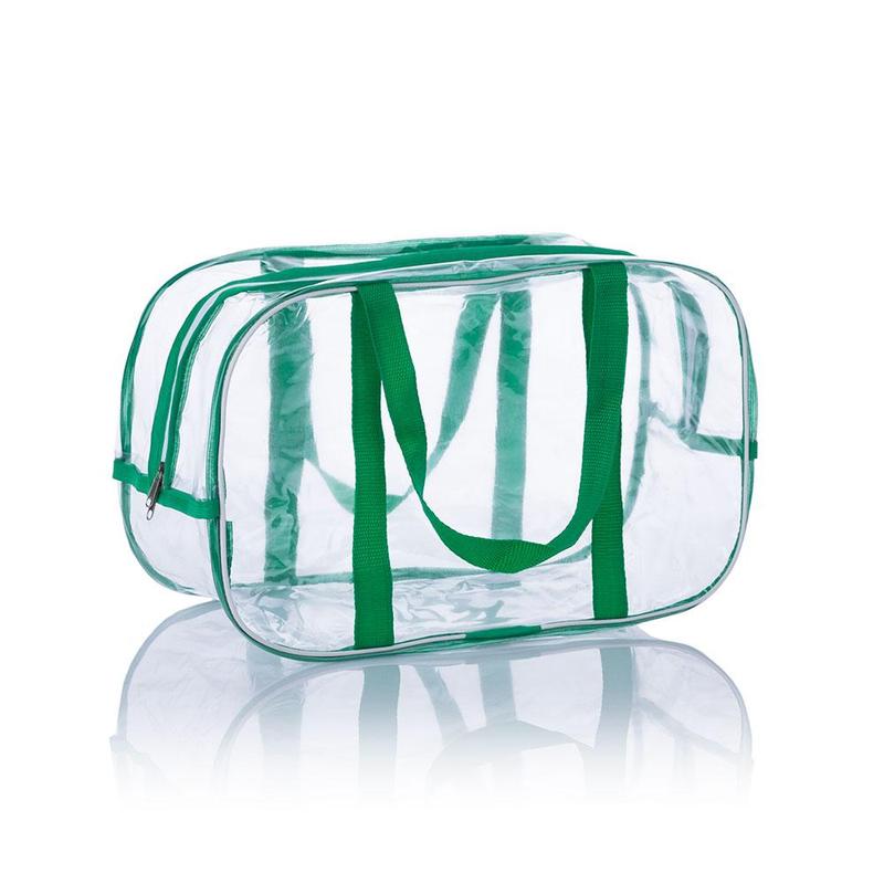 Прозрачная сумка xl(65*35*30) с ременными ручками в роддом, зелёный