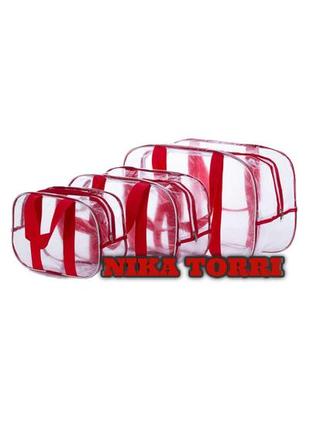 Набор прозрачных сумок (m, l, xl) с ременными ручками красный