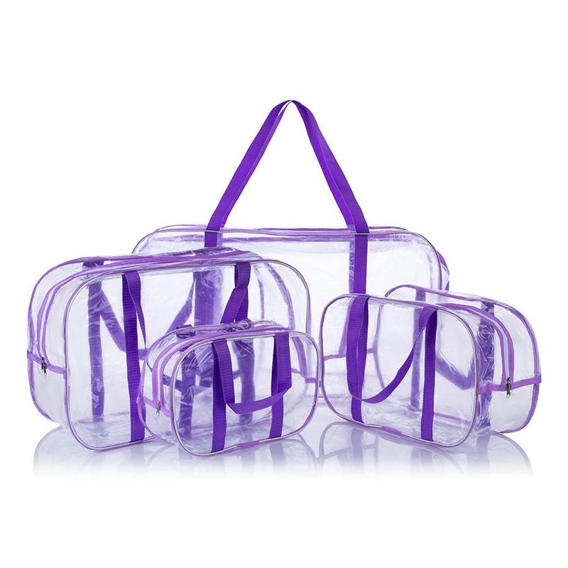 Набор прозрачных сумок (s, m, l, xl) с ременными ручками сирень
