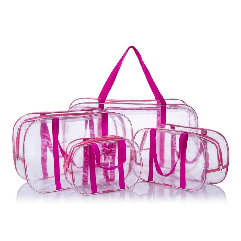Набор прозрачных сумок (s, m, l, xl) с ременными ручками малина